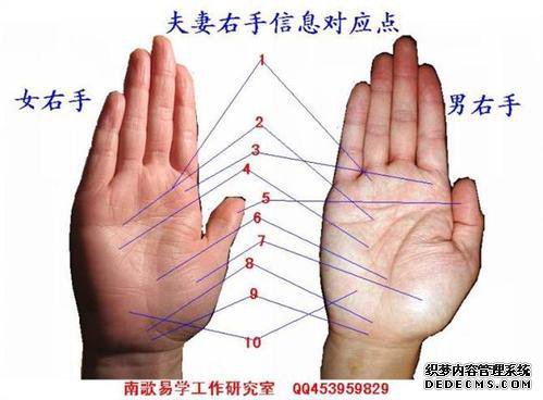 在女性手的情感线下方,智慧线上有一条对角线,表明离婚和再婚的可能性非常高。这些女性结婚并被鼓励在未来体验更多情绪。我决定更多。